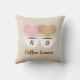 En söt personlig dekorativ kudde för "Kaffe Älskare". Utformningen omfattar två kaffe koppar med sammanflätad ljus rosa och latte brun hjärtformade ånga och en gräddbaksida i färgaden. Anpassa anpassningsbarna med parets första namn initialer. Tvåsidig design innehåller samma bild och text på båda sidor.