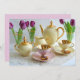 Ett härligt inbjudningskort för kaffemorgon. Lyktbildens funktioner är citron, rosa och guld vintage Harlequin-kaffe och tunna lila. Anpassa med din egen händelseinformation.