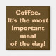 10 av 10 kaffemissbrukare är överens med denna magnet. Konstruktionen har en brunt bakgrund och en grå skrift som lyder: "Kaffe. Det är dagens viktigaste måltid!" Jag hittar inte på saker. Det är vetenskap!