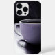 Fotografi av ett ångande kopp av nybryggt kaffe. Bilden har en blåaktig, moody färg och filmnosbelysning. Lika perfekt för koffeinhound eller de som under en regnig dag har ett stort javakvätt.