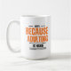 En fetstilt och relativ typografisk design för kaffe älskare. Texten "COFFEE" visas i ett litet, kapitaliserat teckensnitt med linjer på vardera sidan, medan huvudmeddelandet "EFTERSOM ADULTING IS HARD" visas på en framträdande plats i ett stort, tryckt orange. Uttrycket "IS HARD" är i ett mindre, fetstilt teckensnitt som är avmarkerat av en dubbla-line-avgränsare. Stil är modernt och grumligt, perfekt för en t-shirt, mugg eller poster, som fångar upp den allmänna känslan av att behöva kaffe för att klara utmaningarna med vuxen ålder.