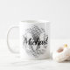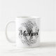 Personlig kaffe koppar med initial och namn i svart, vitt på grått-halftonvortexa. Elegant neutralt färg. Redigera text för att anpassa det ursprungliga brev och namn.