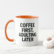 Kaffe först, Adulting Senare - Funny Slogan Mugg