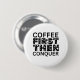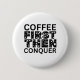 Kickstarta din dag med den här djärva men enkla Button som talar till varje kaffe älskare! Med ren, sans-serif-typografi och en elegant monokrom palett är "Kaffe först, sedan konquer" T-shirt perfekt för dem som tror på att börja sin dag med koffein och självförtroende.