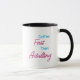 Kaffe först, sedan Adulting. Punk gothic Alternative söt-kvinna i en mohawk med rosa och blå accents och roligt kaffecitat.