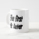 Kaffe Första kaffet citerar svart text Jumbo Mugg