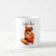 Kaffe First, roligt mug med Fox teckning och blå fjäril.