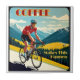 Du kan cykla över stora berg på grund av kaffe- och kaffeensam. Denna underbara utformning visar en cyklist i bergen i stil på en poster i vintage resor.