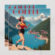 Du springa har höga berg och gör ultralådande tävling på grund av kaffe och ensam. Denna underbara utformning visar en springer i bergen stil i en vintage resor-poster.