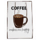 Kaffe gör mig till mataffe med medelstor gåva av Lycklig, som ursprungligen utformades av Nisha Prabhu. Släpp loss glädjen i koffeinet med vår vackra "Kaffe gör mig Lycklig"-mediepåse! Perfekten för kaffet älskare i ditt liv, den här fina väskan är mer än bara ett sätt att omkullkasta dina gåvor - det är ett glatt påstående som firar livets lilla njutning. Vare sig du ger någon speciell en påse av deras favoritbrygga eller överraskar en vän med en mysigt kaffedag, är den här väskan perfektens följeslagare. Firar kaffets magi och gör varje tillfälle lite ljusare!