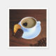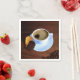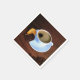 En Kopp i kaffeillustration med en vit mugg hett kaffe med hjärtformade rök på brunt underlag med typografi på väggen.