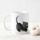 En "kaffemött!" mugg med en svart kattunge för katten och kaffet älskare i ditt liv.