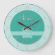 Cafe Kitchen Wall Clock, Chex MINT-är en grafikteknik som är utformad för en allover chex mönster. Mönster liknar mönster du såg på morméns kökskocka bokar. Utsidan av den här klockan är ljusmynningen och det vita schexet mönster. Klockets mittpunkt är mörkare mynta med mint text. Kursiv text överst på plattan lyder: CAFE. Texten om grund har följande lydelse: Njut av livet det är Delicious! Ett band med märkre sitter över grund för att anpassa sig till ett initialt band eller namn. Klocknumren skrivs ut i vitt. Den här klockan är tillgänglig i olika färger och texter. För melamin tallrikar som koordinerar, se min zazzle.com/zazzleplates-butik.