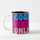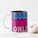 Keramiskt kaffe mugg med en fots med smycken i elegant på ena sidan och med frasen "Bra vibes only" på den andra sidan.