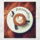 Kaffe kopp cappuccino brunvit latte vinflaska etikett