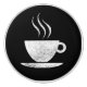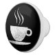 Keramisk knopp med svart bakgrund och vit, ångande kopp kaffe. Du kan ändra bakgrunden färg till vilken färg du vill ha!