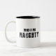 Konstruktion för kaffe mugg med Born Naughty i svart nedtryckt brev