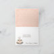 Uttryck din glädje och tacksamhet med en massa kärlek med dessa söta och snygga kaffetematiska bröllops-, brud- och parfesttack-kort i creme, bruna, rosafärgade och silverfärgade nyanser med en kopp kaffe som kan förses med initials bokstäver för brud och brudgum på sin rosafärgade hjärtformade design. Denna ångande kopp kaffe på en tallrik med en sked har ett skumhjärta flytande i den. Den övre insidan av kortet har ett rosafärgat och vitt prickigt hjärtmönster. Konst © Chrissy H. Studios, LLC. Med ensamrätt.