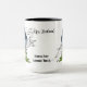 En kaffekopp med Nya Zeelands inhemska fågel, Kereru (duva) på. Inhemska växter och en karta över Sydön pryder också denna kopp.