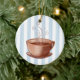 Illustration av en lugnande, ångande kopp av kaffe mot en blå och vit strimlad bakgrund. Perfekt till användan som en inbjudan till brunch, kaffe eller att bara träffas med koffeinvänliga vänner! Matchar även: