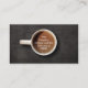 Ett foto av ett kaffe kopp på svart träskekorn håller ditt företag namn i en stiliserad textbehandling på detta unika slagit kort. Kontakta designern om du behöver hjälp med längre namn eller alternativa textlayouter. Bilden av kaffe kopp och ditt erbjudande är på baksidan. Denna konstruktion ingår i en serie matchande affärssäkerheter. © 1201AM-KREATIV
