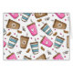 Cute, roligt och vackra mönster med kaffe koppar, kaffebönor och hjärtan. Modern och trendig, perfekt för kaffet älskare i ditt liv.
