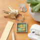 Kaffe koppar, kaffekruka och kaffebönor fyrkantig silverfärgad nyckelring