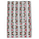 Den här roligten är utformad med rött, vitt och grått stripe mönster med ett kaffe kopp mönster.