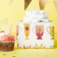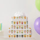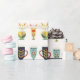 En mängd färgkaffe och te kopp med olika blommigt och mönster i hjärtat arrangeras i ett upprepande mönster mot en vit bakgrund. Varje kopp visar en unik kombination av färg och formgivning som skapar en dynamisk och symmetrisk visning.