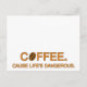 Kaffe. Livet är farligt, roligtens livsslogan. Vykort