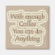 Kylmagnet påminner dig om att "Med tillräckligt med kaffe kan du göra vad som helst. Mjukt, kaffe och krämer.