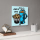 Detta kaffe med muffindesign presenterar en blåttmugg och att ånga kaffe och en muffin. Anpassadetext är "din namn- & Cafe" anpassade som ändrar bakgrundsfärgen. Perfekt för ditt kök.