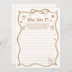 Lägg till roligt till möhippan på ditt kaffe med den här Personligen Kaffe-Möhippan Gissa vem som är jag-spelkortet! Perfekt för ett tema för möhippa av kaffe eller kärlek är att breda ut sig om möhippan, detta interaktiva spel är ett måste för ditt kaffemodade party. Impress gäster med kärlek andas möhippa och firar paret med en unik tvist. Minnen med detta viktiga för kaffe älskare och kärlek brinner i möhippa firande