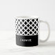 Keramiskt kaffe mugg visas med svartvit konst. Anpassa det här objektet och ändra exemplet namn till ditt.