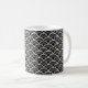 Keramiskt kaffe mugg visas med svartvit konst. Anpassa det här objektet eller köp som det är.