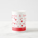 Hjärter flyter över ett rött pub med texten "Lycklig 2-årsdagen". Precis ovanför hjärtan hittar du namnen på det festande paret. Även om 2:a årsdagen traditionellt är "bomullsårsdagen", är det modernare att det är "chinans" årsdag, och skapar denna china mugg i benet vara en utmärkt presentidé för detta berömda tillfälle.