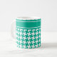 En snyggt Kaffe Mugg, med en houndstandekontroll mönster i trending Emerald Grönt and white. Det finns ett vanligt band längst upp i mönster som du kan anpassa med namn eller någon text - eller lämna tomt.