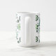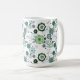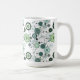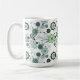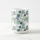 Det här keramiska kaffet mugg visas med söt blommigt i färg av aqua och grönt. Anpassa det här objektet eller köp som det är.
