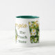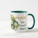 Även om man ibland kallade "Empire state i syd" är Georgiens officiell smeknamn "Persikostaten". Ingen . Georgien är den största producenten av jordnötter, persikor och pekaner. Tjerokee Ro, som är så vacker och ömtålig, har en ledsen saga. En tragisk händelse 1838 då tusentals Tjerokee tvingades ut ur Georgien och andra länder öster i Mississippifloden. Väg som tagits av de inhemska amerikanerna har kallats "Tårar-leden" på grund av de tårar som skövlades av kvinnorna i Cherokee på resan och på grund av det antal inhemska amerikaner som dog på vägen. De säger att hövdarna bad om ett tecken till ge som deras kvinnor hoppas på. Det sägs att där ett tårfall föll blåste ett Cherokee Ro. Blommorna fortsätter att blomma längs väg i dag. Georgien blev den fjärde staten 1788. Som en av våra "äldre" stater är det förvånande att staten sång, "Georgia on My Mind" antogs 1979 och officiell statlig flagga endast data 2003. För all rik, bra och dåligt är Georgien hem för en av de mest contemporary städerna i land: Atlanta. Atlanta är också Coca-Colas födelseort. Den här fina designen betalar hyllning till detta vackra tillstånd. Statens kontur fylls med de vackra vita blommorna från Tjerokee Ro. Detta är upplagt med gult guld "Georgia" och förankrat med gräs grönt "The Peach State". Detta fantastiska kaffe mugg är ett utmärkt alternativ för statliga minnesmärken eller för alla som vill betala vördnad för vår fjärde fantastisk. Den ursprungliga lägeskonturen är täckt med gulten guld "GEORGIEN" och "Persikostaten" är i det nedre hörnet och koordinerar på ett vackert sätt med handtaget och brimen i detta vackra kopp.