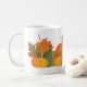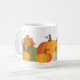Det här keramiska kaffet mugg visas i vitt med en underbar höstpumpor och löv tryckt. Anpassa det här objektet eller köp som det är. Lagrar-bild