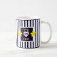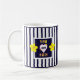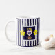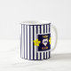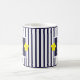 Kaffet mugg i marin och vit Rand med handmålade blommor i abstrakt. Positiv bekräftelse - ni har detta.