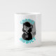 Bilden har en enkel men slående design av ett kaffe mugg på en svart bakgrund. Mugg har ånga stigning från det, vilket visar att det är fyllt med hett kaffe. På mugg visas en bild av en person som håller i kopp, bär glasögon och en buk i håret. Ovanför och under denna illustration är texten "COFFEE ADDICT" skriven i ljusblå form som omger den centrala bilden. Utformningen är ren, med en modern och lekfull estetik.