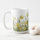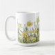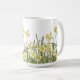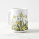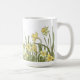 Kaffe mugg med blommigt gräns av gult-affodils på vit bakgrund.