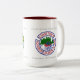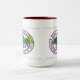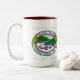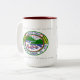 Tvåtonsfärgade 15 oz Kaffe Mugg med Canoe Trails Training Patches och Voyageur sång-texter.