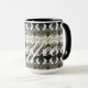 Den blommade svarta designern löv mugg, anpassar det vita mönster efter ditt eget färg val. Kaffetexten kan ändras till namn eller så går det inte att ta bort texten.