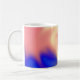 Kaffe mugg för hem eller kontor, täckt med färglöst persiko-, gult- och blåssmam på utsidan.