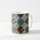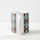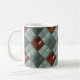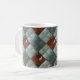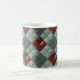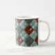 Den här fantastiska kaffet eller Tea mugg är en perfekt för dig om du njuter av den ovanliga 3D-plattan. Färg är teal, brun och turkos. Den här mosaikdesignen kommer från 3-tums plattor som är formade som små, Ziggurats. Zigguraterna var uråldriga i torn. Dessa plattor tillverkades av Oregon-platttillverkaren Fay Jones Day.