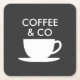 Papper Underlägg av kaffe och anpassningsbar på namn Square. Skapa dryckesmästare för kafé, pub, företag, företag, kontor, butik, butik, restaurang, lunchrum osv. Finns i svart, grått och annat färg. Modern design för kaffe älskare, barista, vänner, familj etc.
