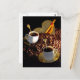 Gourmet-kaffebönor och kaffe i vitt kopp, med hjärt- och stjärnomrörare. En cigarr vilar på ett stort guld hjärta. Foto av Alpha du centaure.