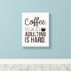 Bränn dina moraliseringar med motivation! Det uttänkta kanvastrycket "Kaffe: eftersom vuxen är svår" är perfekten i humor och stil. Designad för kaffe älskare som behöver en daglig koffein- och roligt! Du kan anpassa färg efter din favorit, skapar det till en unik dekorator biet för ditt kök, kaffoknapp eller kontor.